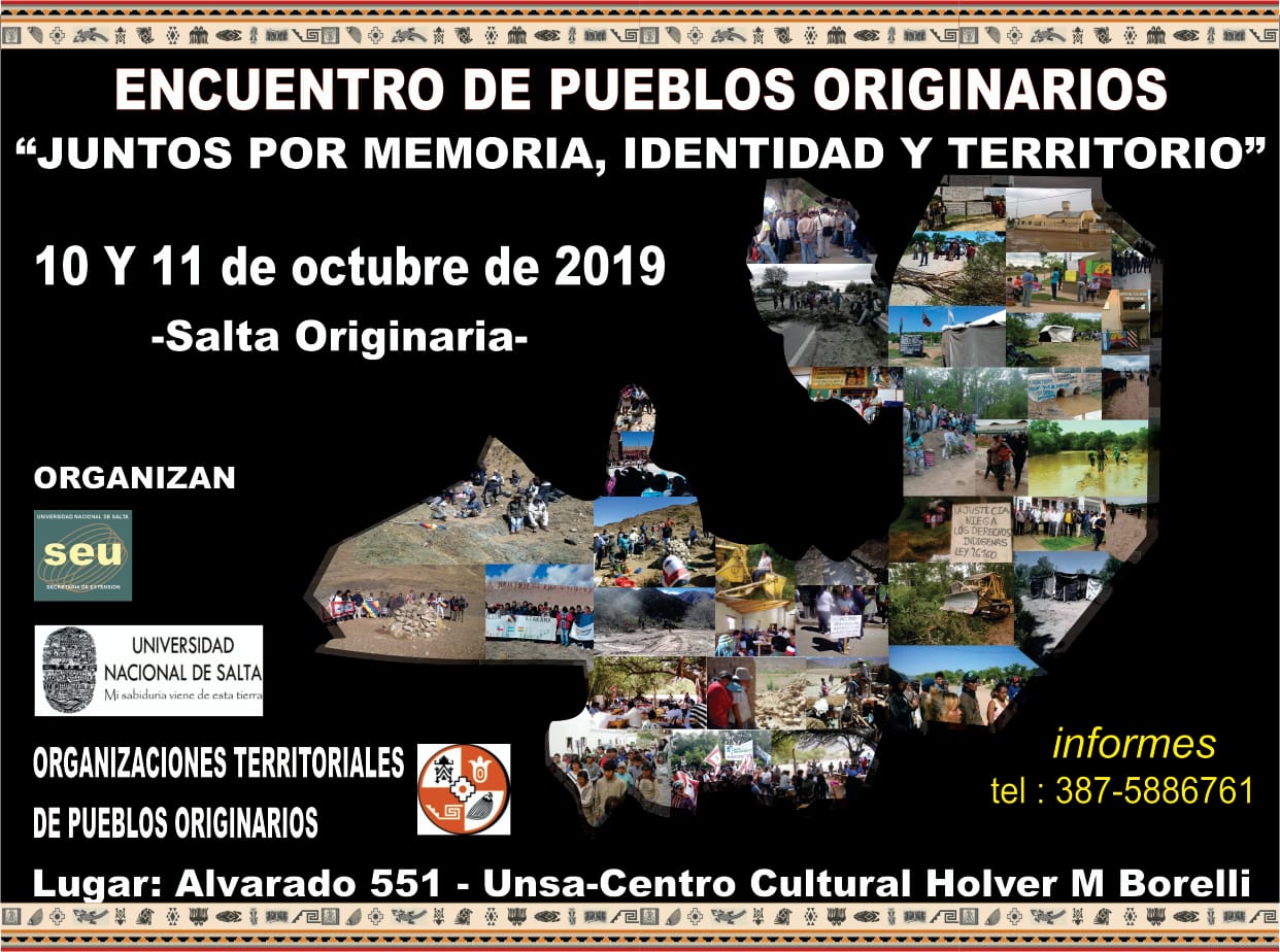 La Secretaría de Postgrado, Investigación y Extensión al Medio, invita al Encuentro "Pueblos Originarios y Territorio", que se llevará a cabo el 10 y 11 de octubre del 2019 en la Universidad Nacional de Salta.
