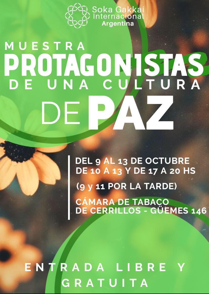 La Secretaría de Postgrado, Investigación y Extensión al Medio, invita a la Muestra: "Protagonistas de una Cultura de Paz", que se desarrollará del 09 al 13 de Octubre en la Güemes 146 de la localidad de Cerrillos, con entrada libre y gratuita.
