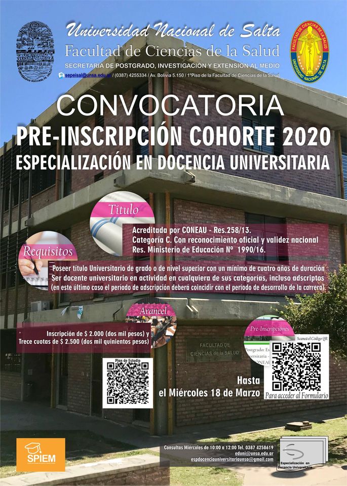 El Plan de Estudios puede consultarlo en http://fsalud.unsa.edu.ar/…/especializa cion-en-docencia-uni…
