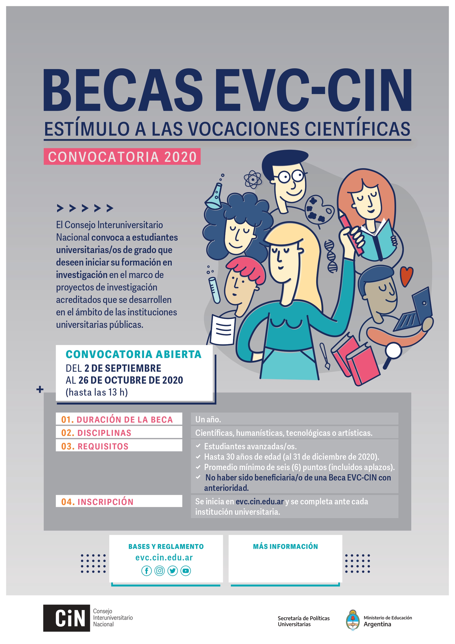 El Consejo Interuniversitario Nacional (CIN) abre la convocatoria a las BECAS EVC CIN destinado a estudiantes universitarios de grado menores de 30 años al 31 de diciembre de 2020 inclusive, que deseen iniciarse como investigadores académicos.